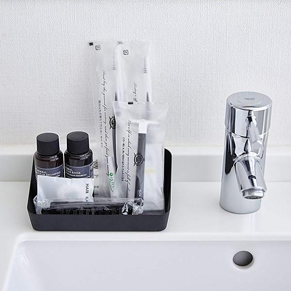 ホテルやご家庭などのバスルームの備品や、石鹸、シャンプー、歯ブラシ、整髪用具などのアメニティーグッズ、ティーバッグ等のお茶セットを収納できます。