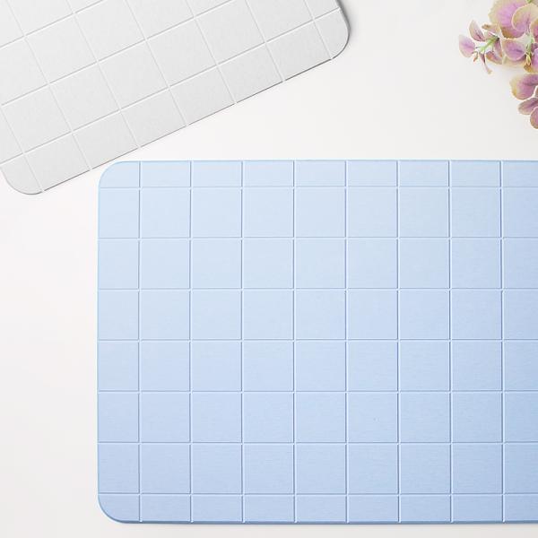 バスマット 珪藻土 速乾 おしゃれ 北欧 ホワイト 白 ブルー 青 石綿 アスベスト 不使用 安全 安心 格子柄 シンプル デザイン 60×40cm 【納期A】【toh-383118】
