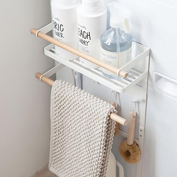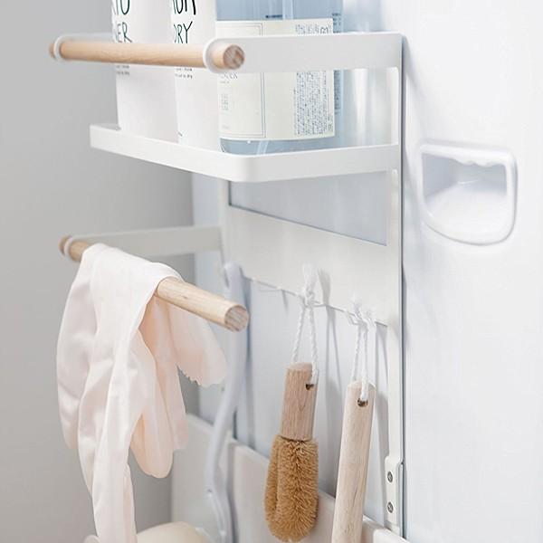 強力マグネットで洗濯機の側面に着けるだけの便利な収納ラックです。