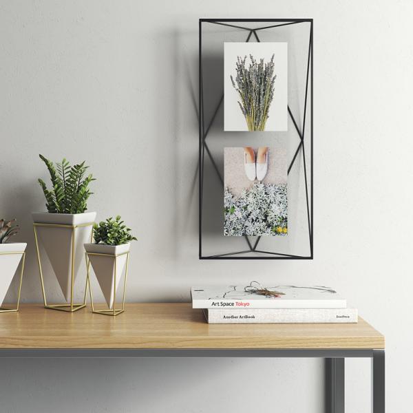 ・幾何学的形状のワイヤー製で、卓上フレーム、壁掛けフレームの両方で使う事ができます。