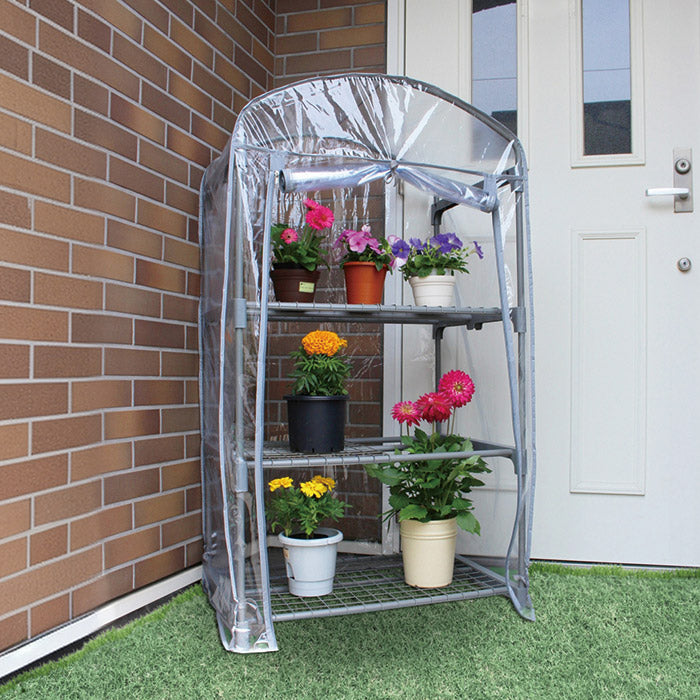 温室 ビニールハウス 家庭用 園芸 植物 栽培 ガーデニング 小型 小さめ 4段 ビニールカバー フラワースタンド フラワーラック 棚 ジッパー 前開け 軽い 軽量 グリーンキーパー 四段 観葉植物 家庭菜園 ハウス用ビニール 屋外