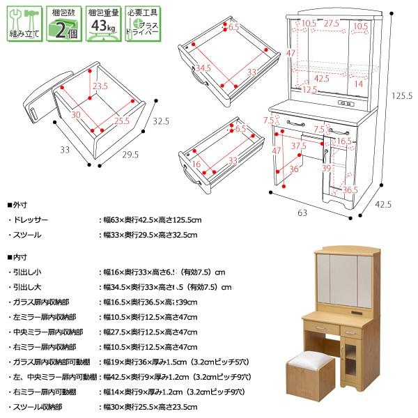 ・ドレッサー:幅63×奥行42.5×高さ125.5cm