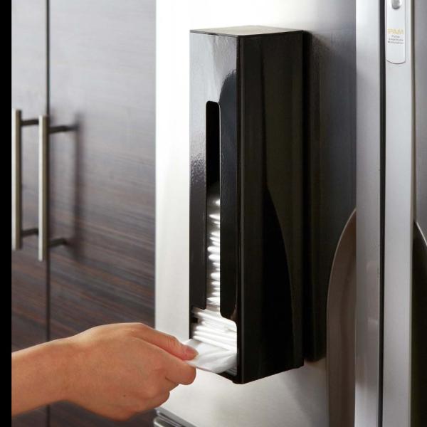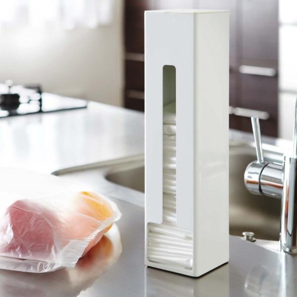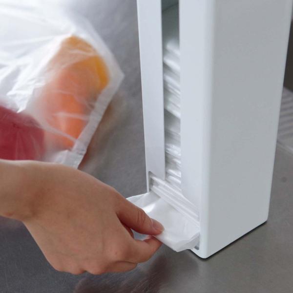 折りたたんで収納すれば約30枚のポリ袋を収納することができるポリ袋ストッカーです。レジ袋をたたまずに丸めて収納しても取り出せます。
