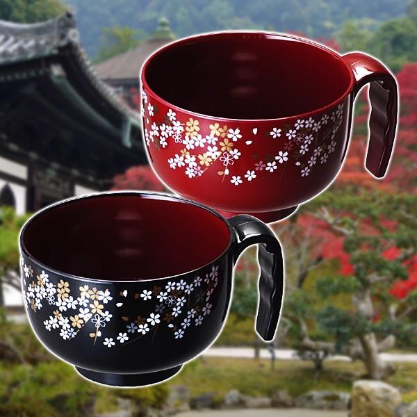 汁椀 山中塗 日本製 手付き汁椀 山中漆器 おしゃれ 取っ手つき お椀 桜柄 2色セット