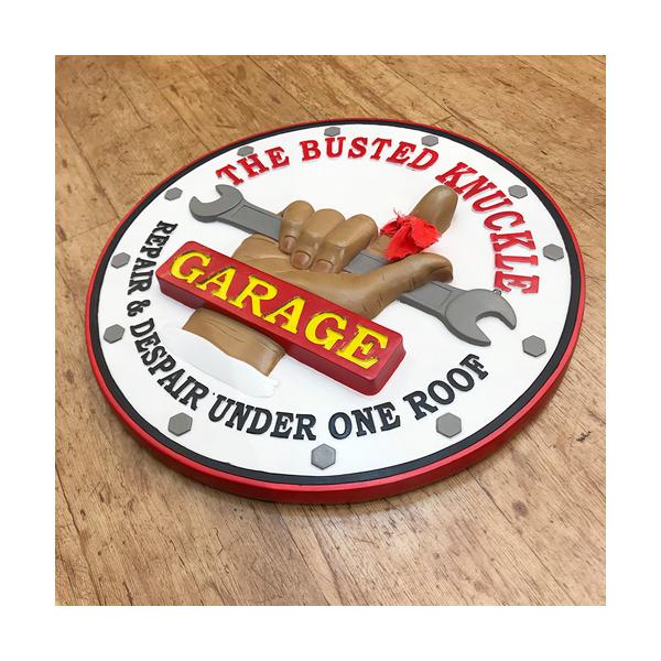 看板 サイン ボード ガレージ 車庫 駐車場 アメカジ アメリカン 雑貨 円形 丸型 壁掛け おしゃれ おもしろ デザイン 男前 レンチ モチーフ ウォールプラッケ
