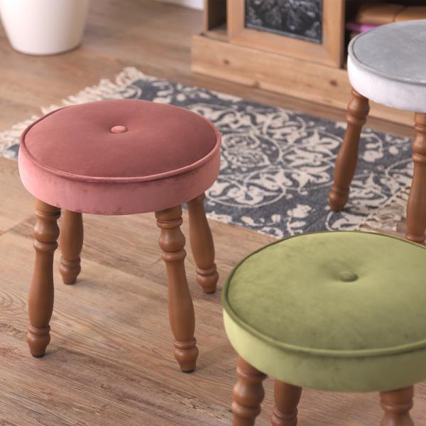 アンティーク調 スツール ベロア クラシック 北欧 姫系 オットマン 木製 カフェ おしゃれ 高さ37センチ チェア ドレッサースツール ピンク