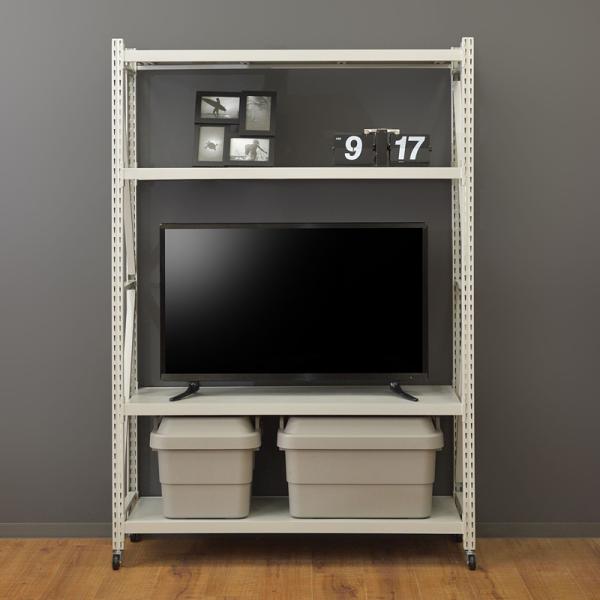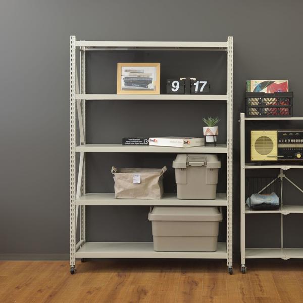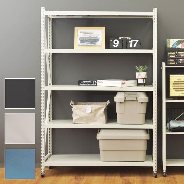 ラック 棚 収納 インダストリアル 無骨 本棚 スチールラック オープンラック シンプル ガレージ 車庫 倉庫 オフィス キャスター付き 黒 ブラック 白系 グレー系 【納期A】【azm-dis-684】