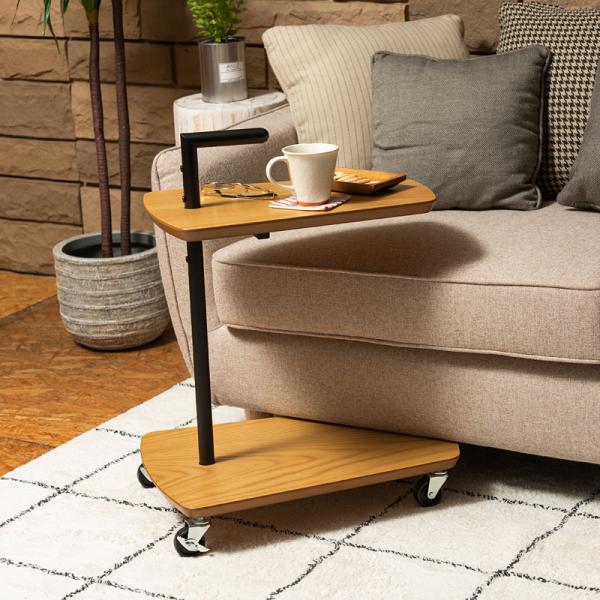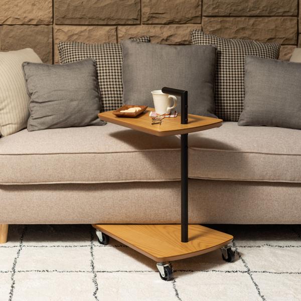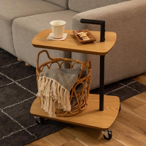 サイドテーブル おしゃれ キャスターつき ワゴン テーブル 棚 収納 インテリア リビング 木製 ソファサイド ベッドサイド 2段 トレー 天板 北欧 ナチュラル 【納期B】【azm-end-353】