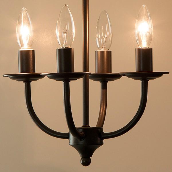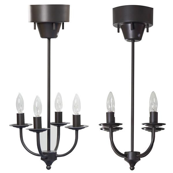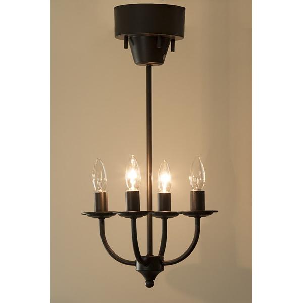 スチール(粉体塗装)、電球付:E17/40Wシャンデリア白熱球(CL)×4、リモコン付:4灯-2灯-2灯-消灯