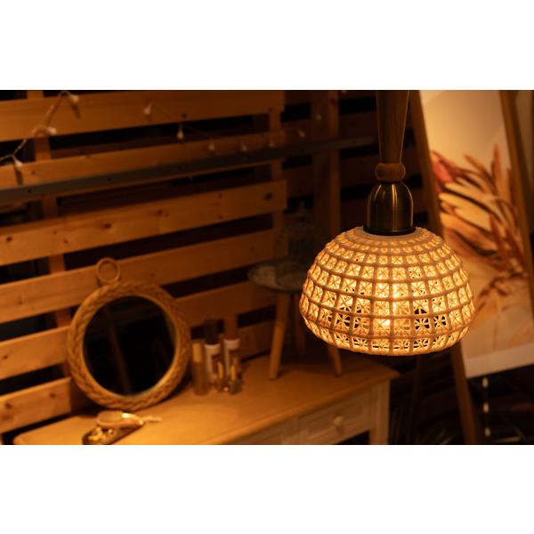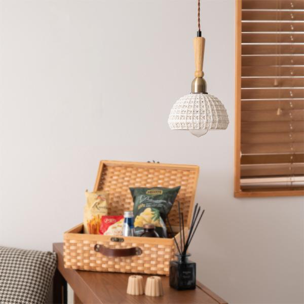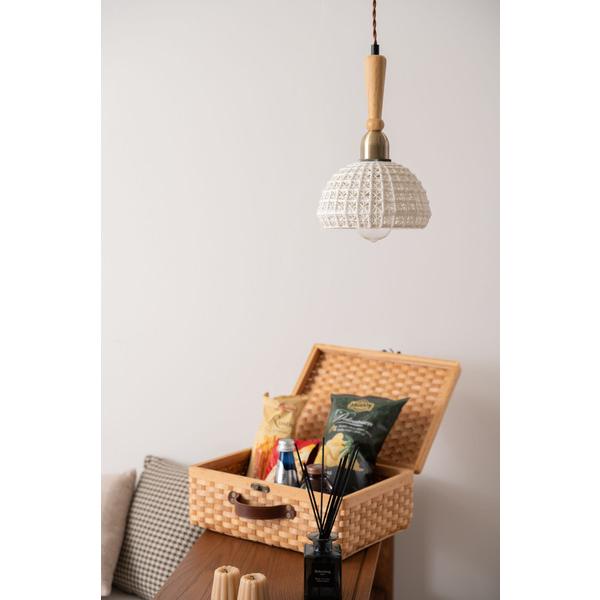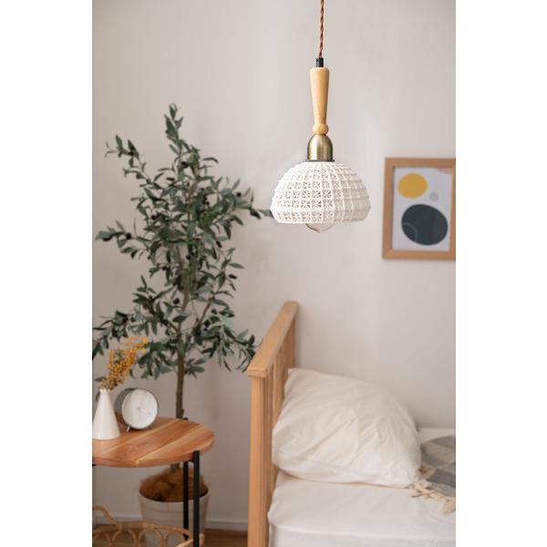 照明 ライト LED対応 天然木 陶器 吊り下げ式 ペンダントライト リビング キッチン おしゃれ レトロ ダイニング 寝室 カフェ 天井照明 ホワイト 白 シンプル 長さ調節