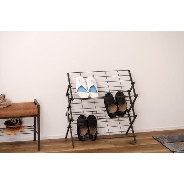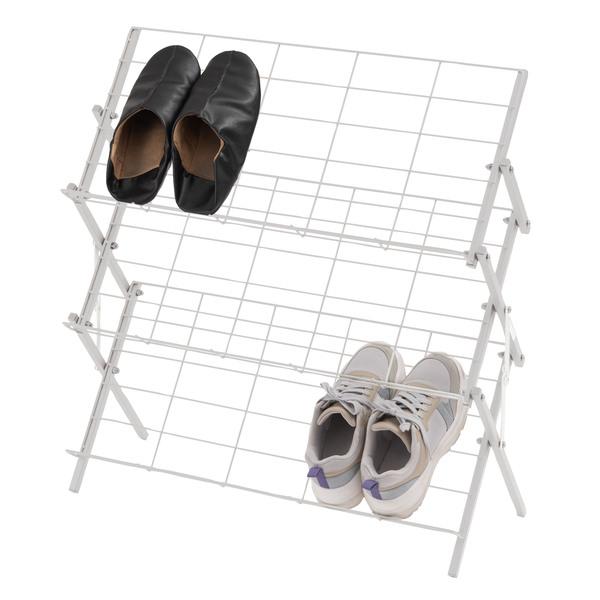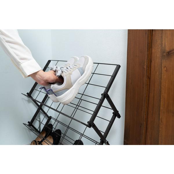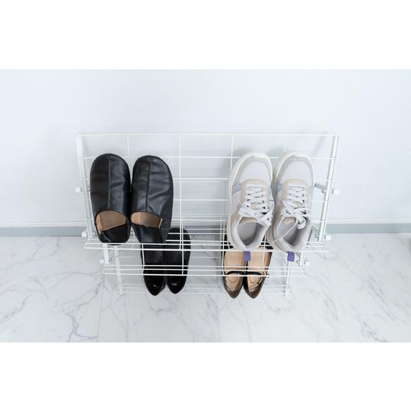 シューズラック 靴 くつ ラック シューズ スリム 玄関 収納 すっきり シンプル 黒 白 ブラック ホワイト 省スペース スチール 金属 おしゃれ コンパクト 通気性 機能性 ストッパー付き 本棚 S字フック