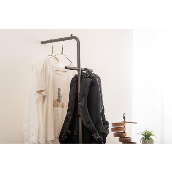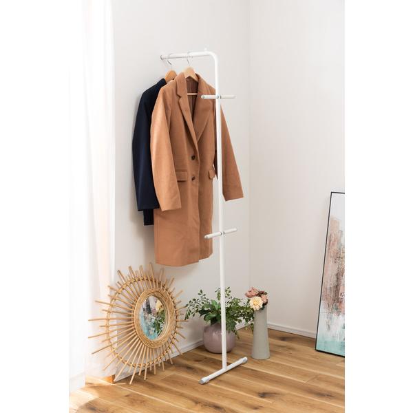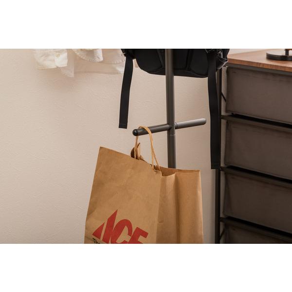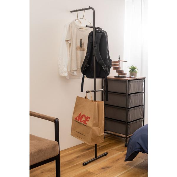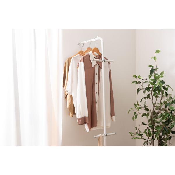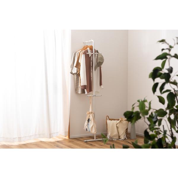 お部屋の中や玄関などの好きな所に立てかけるだけなので場所を取らず、洋服やコート、鞄などを簡単に収納することができます。