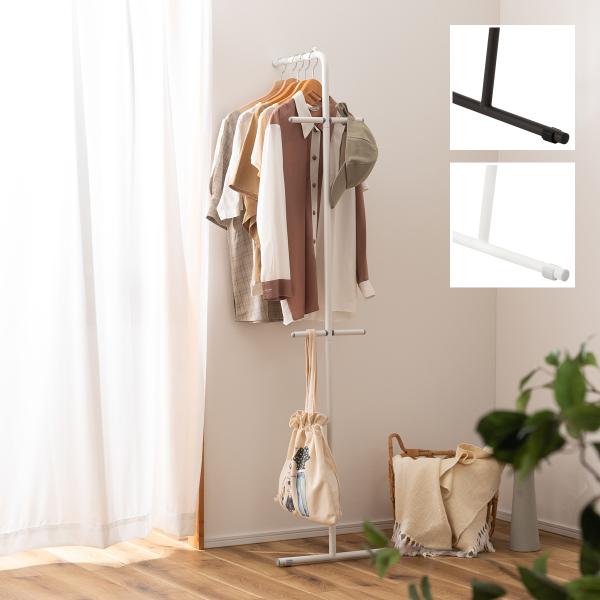 ハンガー ハンガーラック スリム コンパクト シンプル 黒 白 ブラック ホワイト 収納 衣類 スタイリッシュ インテリア ディスプレイ おしゃれ 滑り止め ストッパー 一人暮らし 立てかけ スタンド