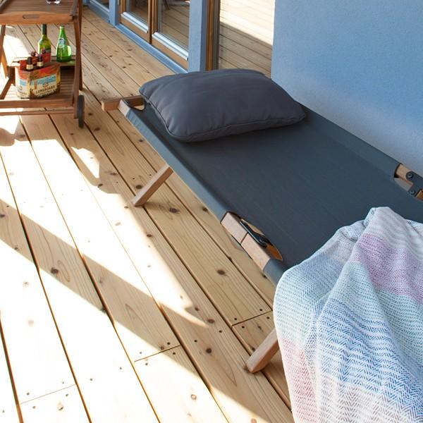 ベランダやお庭のウッドデッキ、キャンプやアウトドアなどの様々なシーンで、天然木の温もりあるフォールディングベッドがしっかりサポートします。