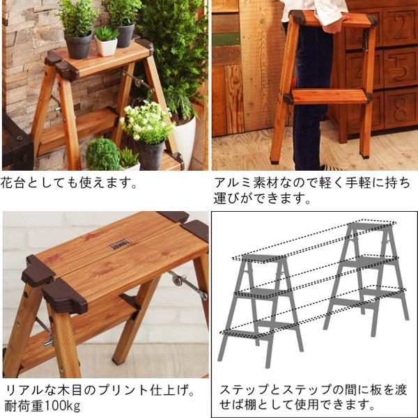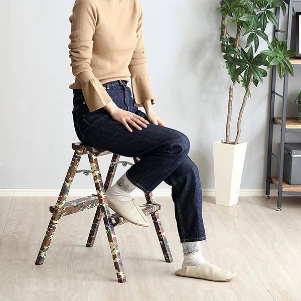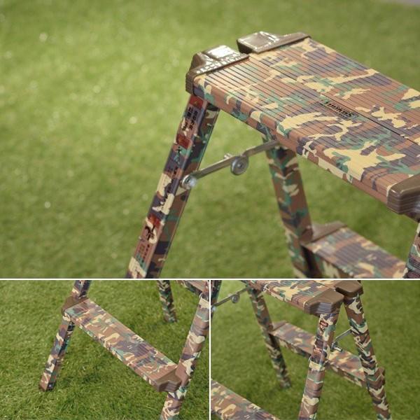 ステップ台 踏み台 2段 アルミ 脚立 おしゃれ 木目 カモフラージュ 迷彩柄 【納期B】【azm-pc-402】