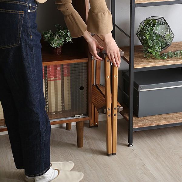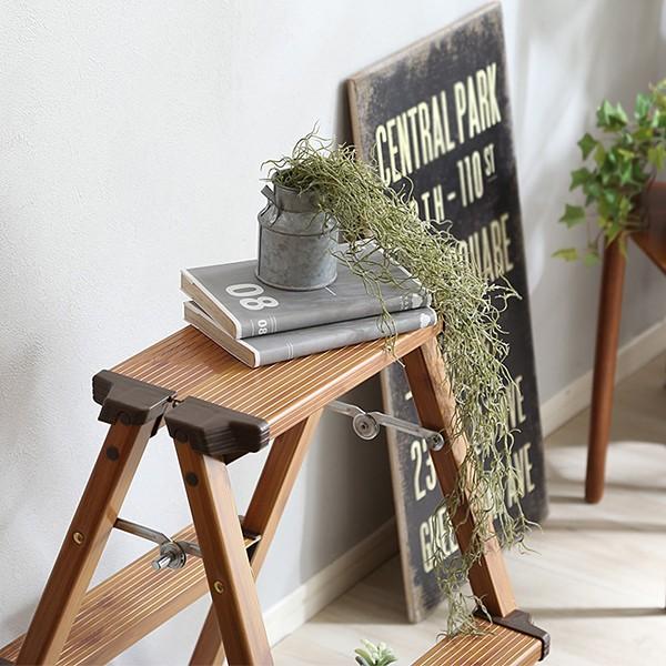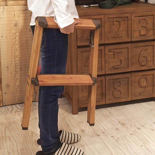 木目調の仕上げでインテリアとしても飾りたくなる脚立です。