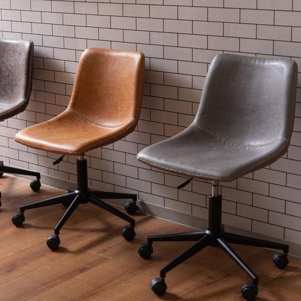 チェア 回転チェア デスクチェア オフィスチェア 座面回転 キャスター付き 移動可能 肘なし アームレス ソフトレザー スタイリッシュ シンプル おしゃれ ブラウン グレー キャメル 在宅ワーク