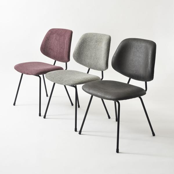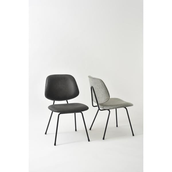 チェア 椅子 チェアー ダイニング リビング ブラック グレー スチール クロスレザー アームレス ゆったり ボリューム