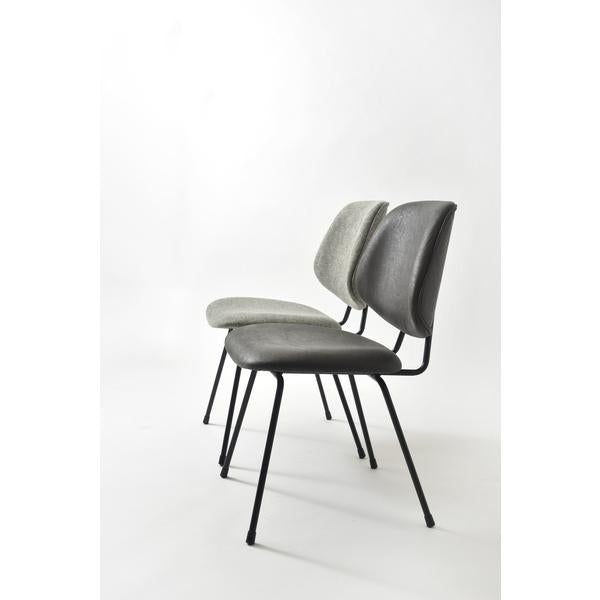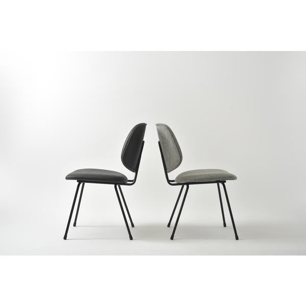 椅子 チェアー ダイニングチェア リビング ブラック グレー スチール クロスレザー アームレス ゆったり ボリューム ワイド 幅広 スタイリッシュ モダン お洒落 【納期A】【azm-pc-78】