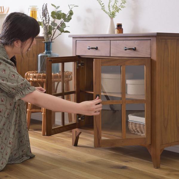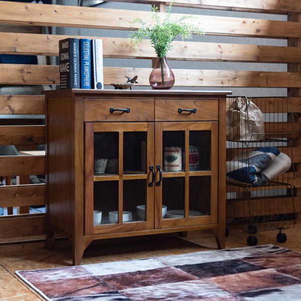 キャビネット 収納 引き出し 食器棚 ミニ 小さい 小型 省スペース コンパクト ナチュラル 北欧モダン 木製 おしゃれ 和 モダン カントリー調 収納棚 ガラス扉 【納期A】【azm-pm-319】