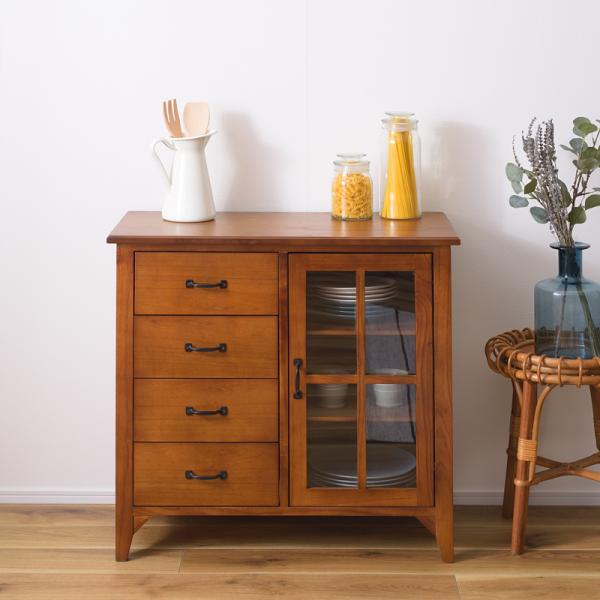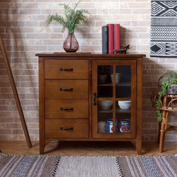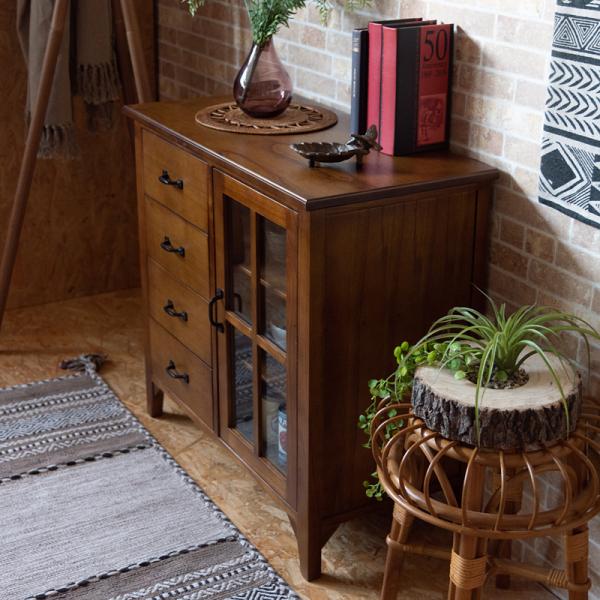 ヴィンテージ感のある木の風合いが、空間に豊かな表情を付ける天然木キャビネットです。