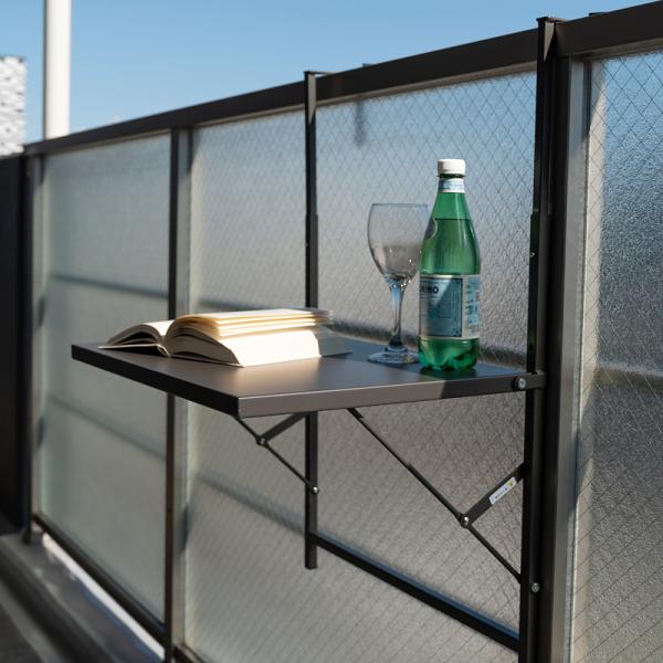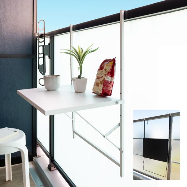 ・ベランダなどの柵に設置できる折りたたみテーブル