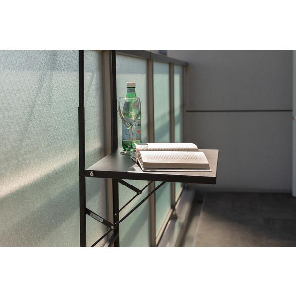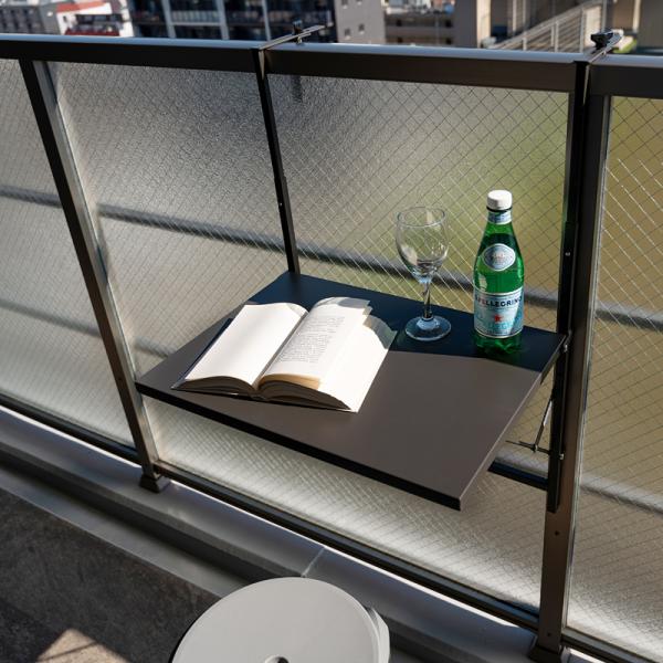 ・柵に引っ掛けて天板を広げれば、ベランダに自分だけの特別なテーブル空間に