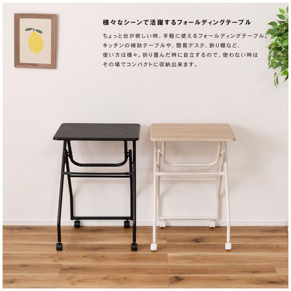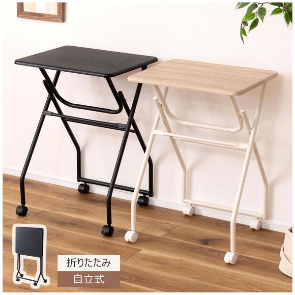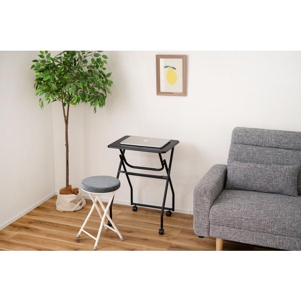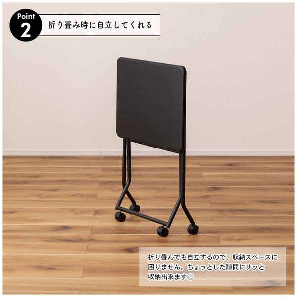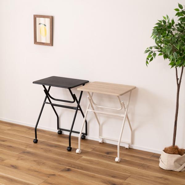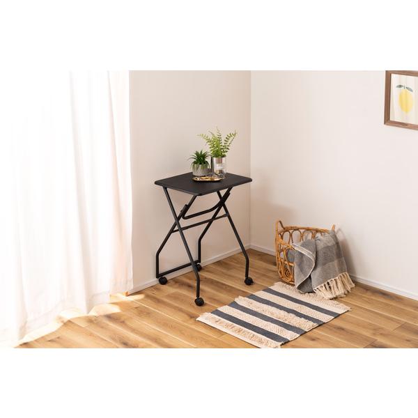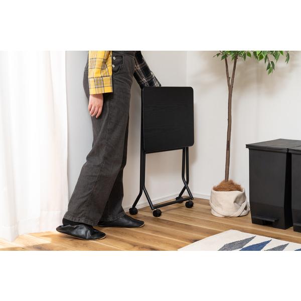折りたたみ式テーブル ハイテーブル キャスター付き 移動 転がる おしゃれ 高さ70cm キッチン 作業デスク シンプル ブラック 黒