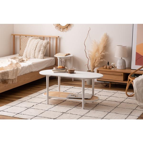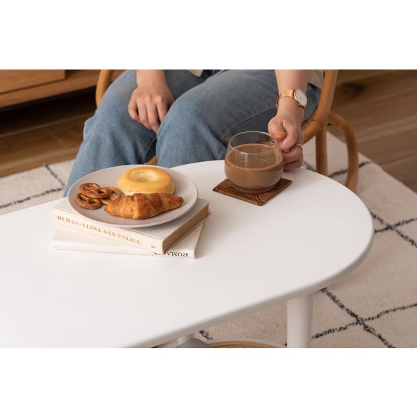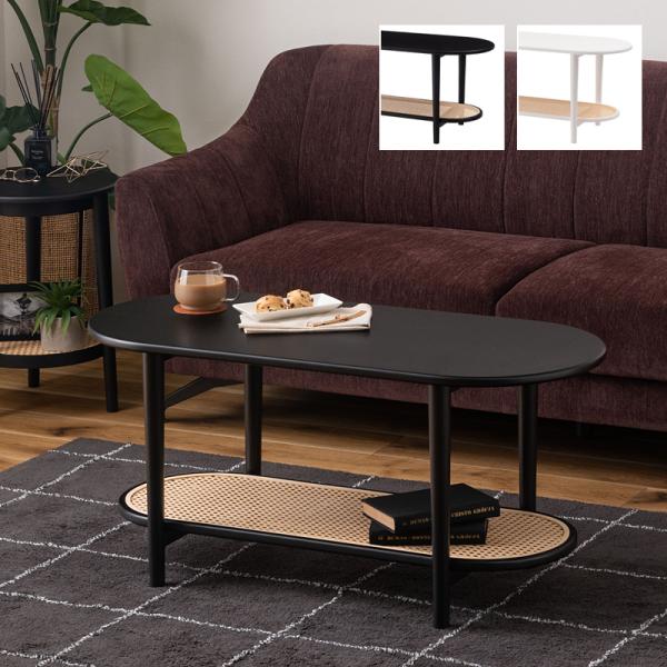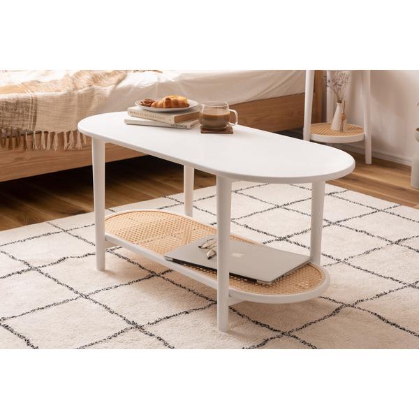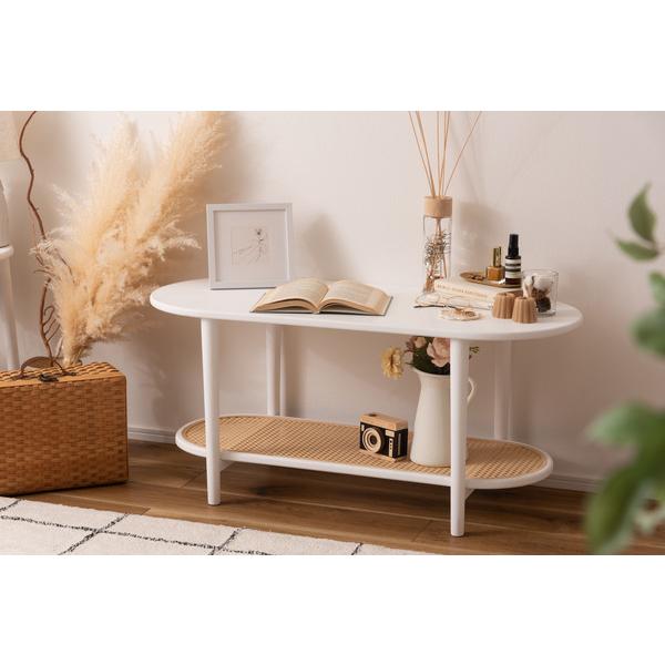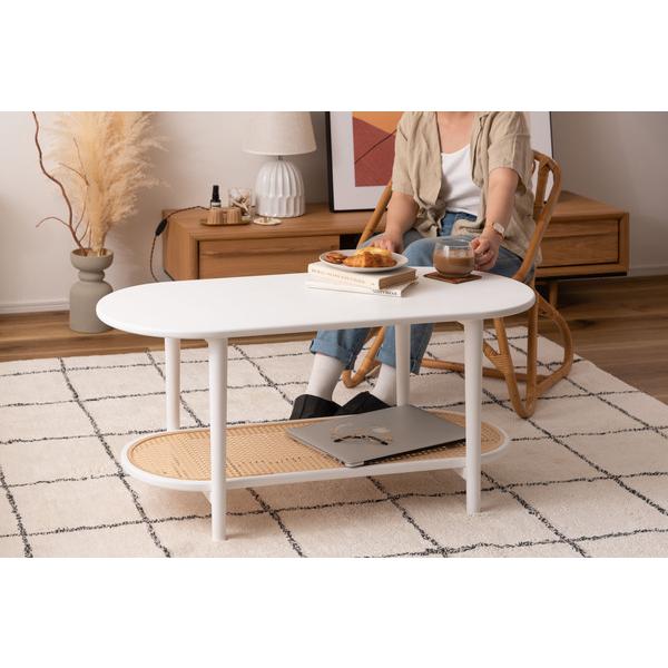 テーブル リビングテーブル センターテーブル 飾り棚 楕円 丸 ラタン 二段 2段 北欧 韓国インテリア シンプル ナチュラル 寝室 ソファーサイド ホワイト 白
