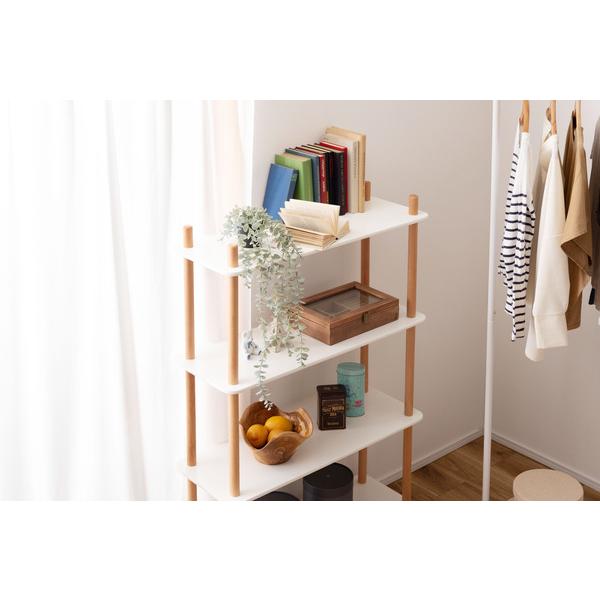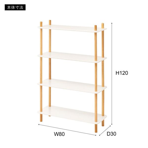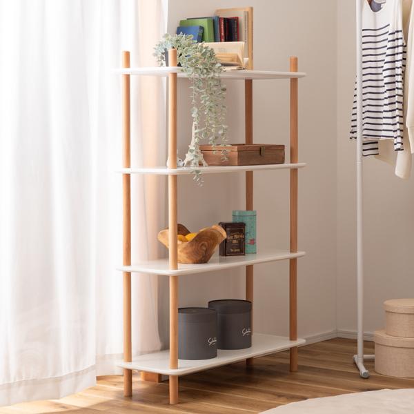 ラック 棚 収納 4段 白 ホワイト 木製 脚 支柱 飾り棚 オープンラック 韓国 おしゃれ 北欧 ナチュラル カフェ シンプル 使いやすい 高さ調節 変更 調節 幅80cm 【納期A】【azm-pt-977】