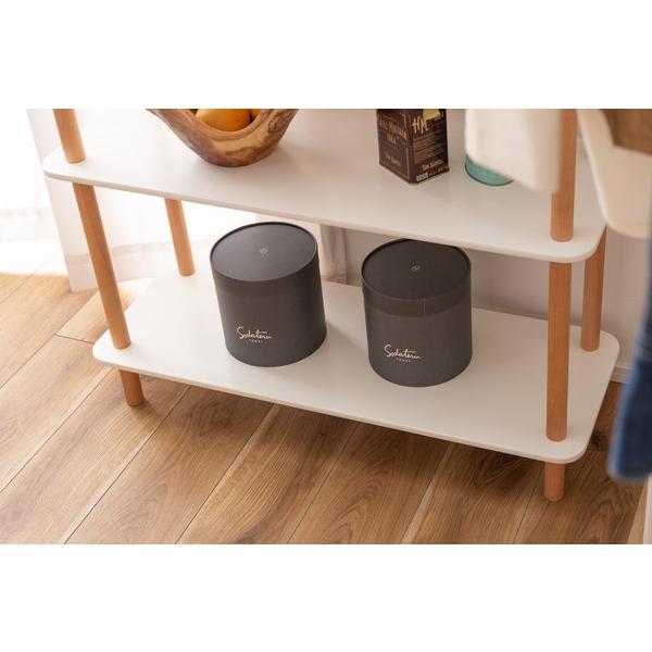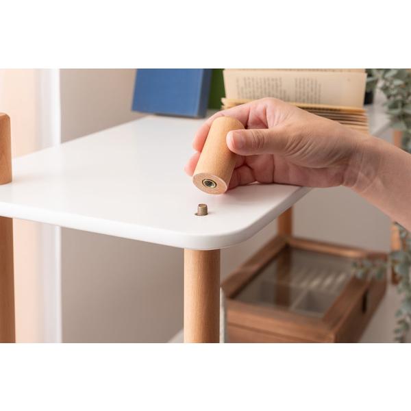 ・ホワイトの棚と天然木のナチュラルカラーな支柱が優しい印象