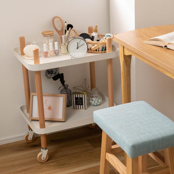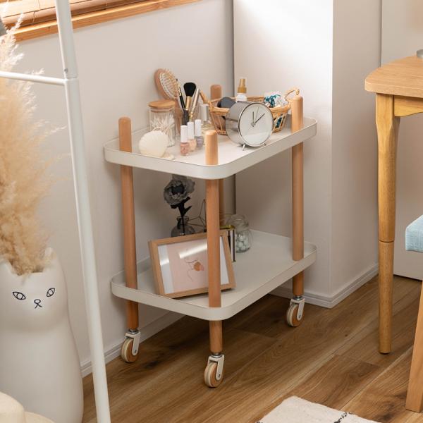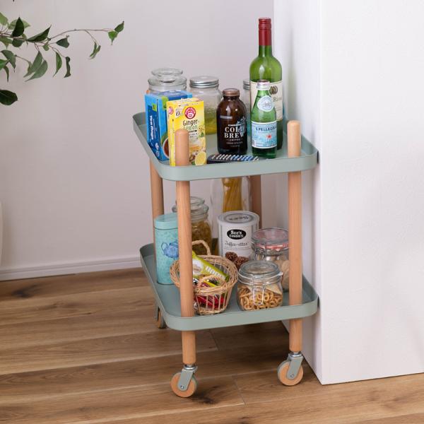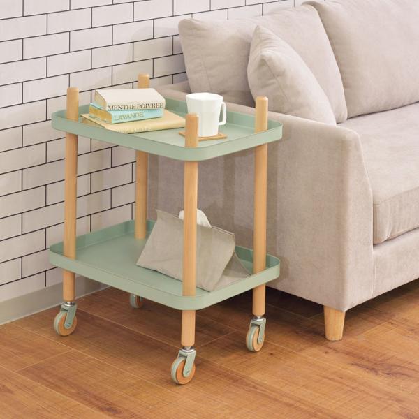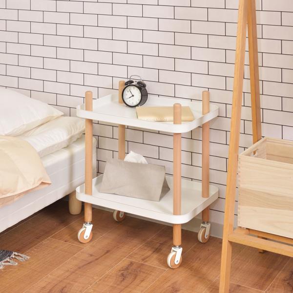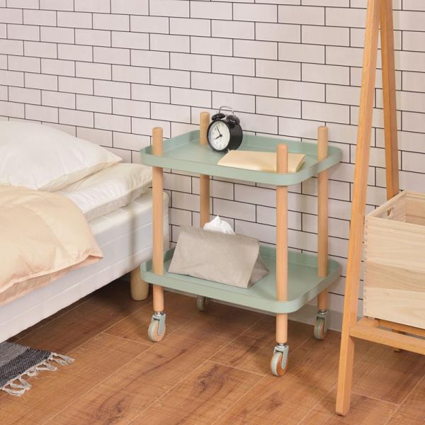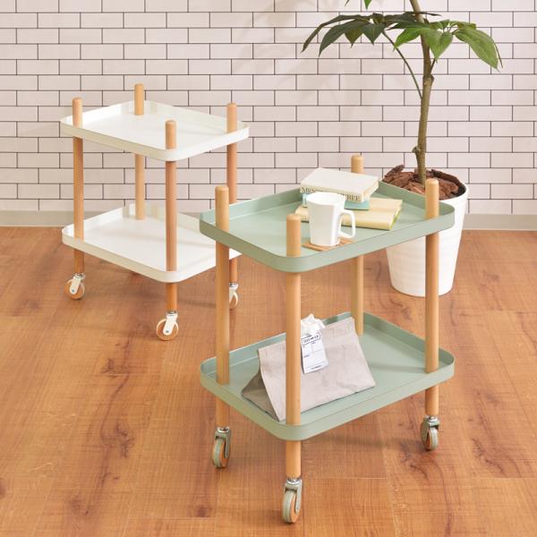 ワゴン 2段 2D マルチワゴン キッチンワゴン サイドテーブル ナイトテーブル ベッドサイド キャスター トレー 木製 天然木 北欧 ナチュラル シンプル かわいい 収納 収納棚 棚 ラック マルチラック オープンラック ホワイト グリーン