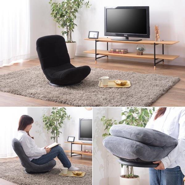 座椅子 回転 360度 座面 クッション 厚み リクライニング 折りたたみ 折り畳み フロアチェア 椅子 座いす 黒 ブラック グレー 【納期B】【azm-rkc-176】
