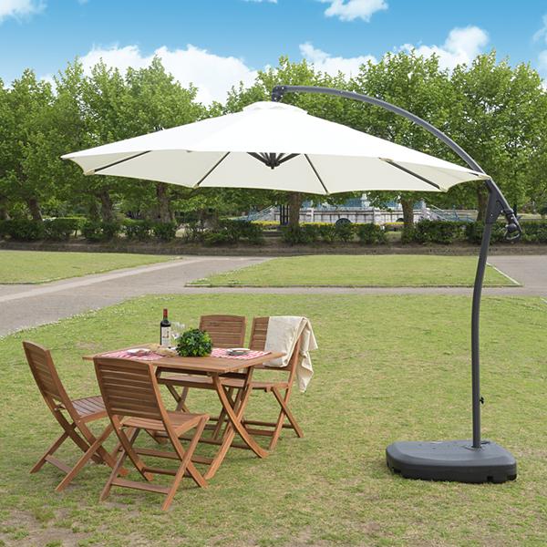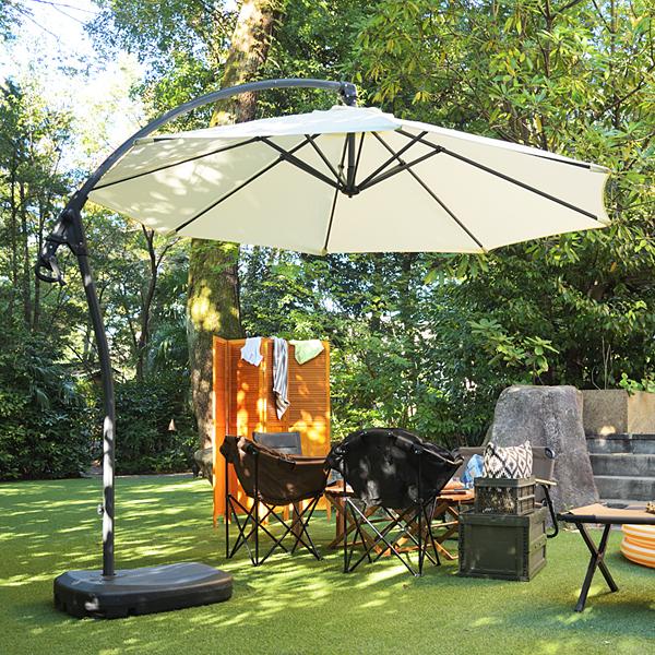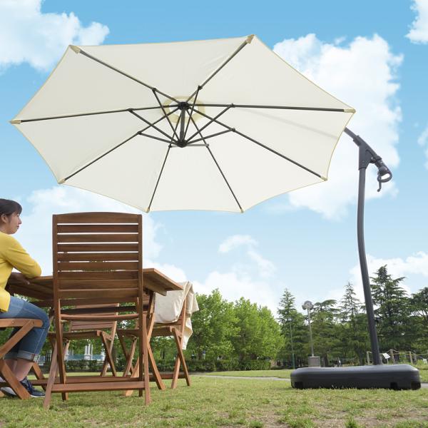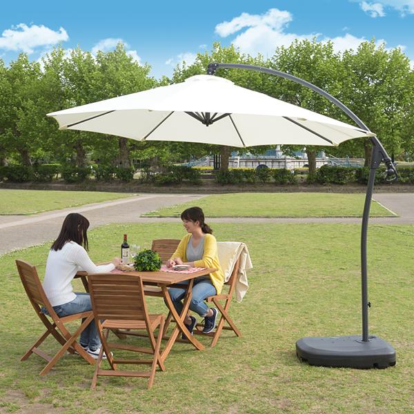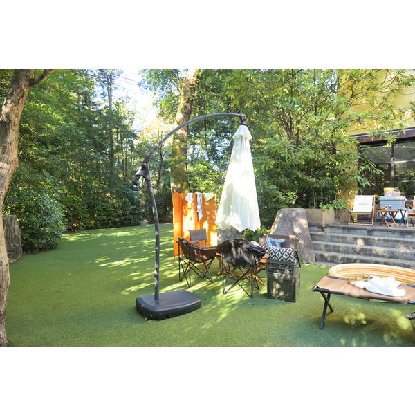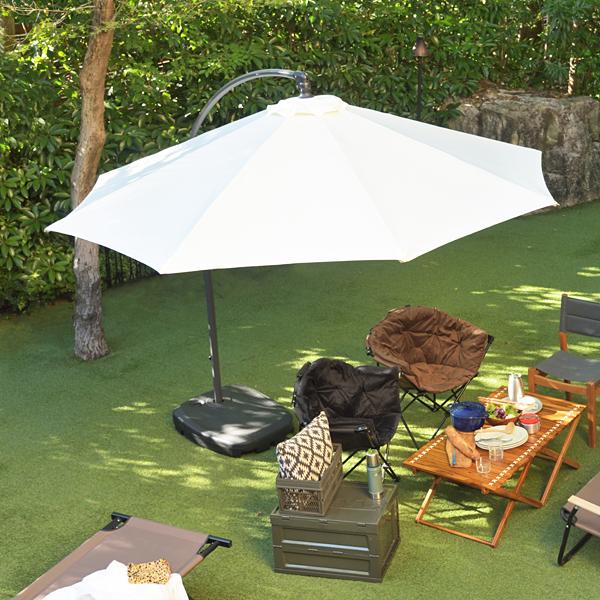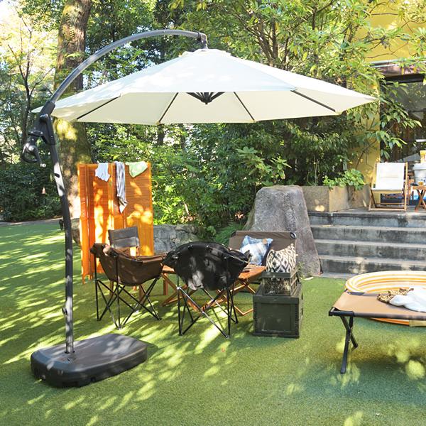 パラソルが大きいので、テーブルやチェアを置いてもスペースに余裕があります。