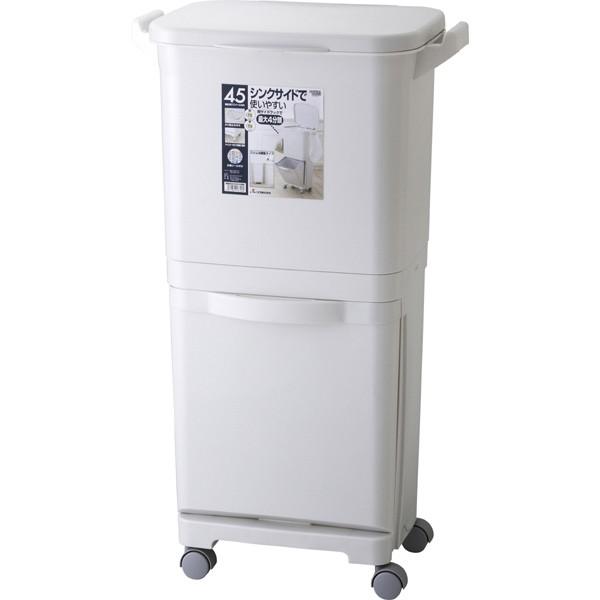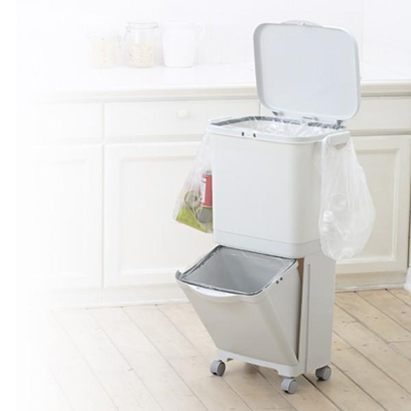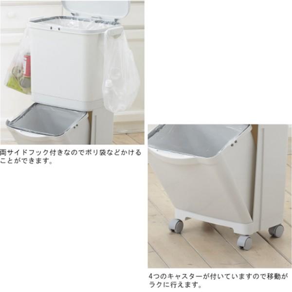 上下段の容器に加え両サイドのフックにゴミ袋を付けられるので燃えるゴミ、不燃ゴミ、缶、ビン類などと分類が可能です。