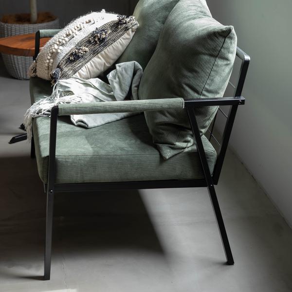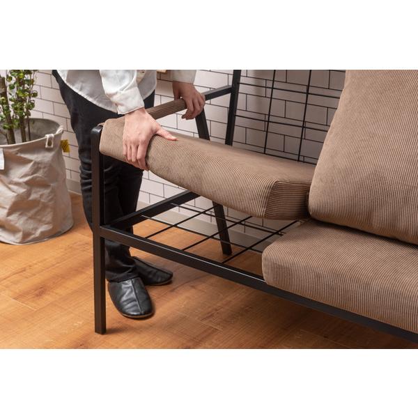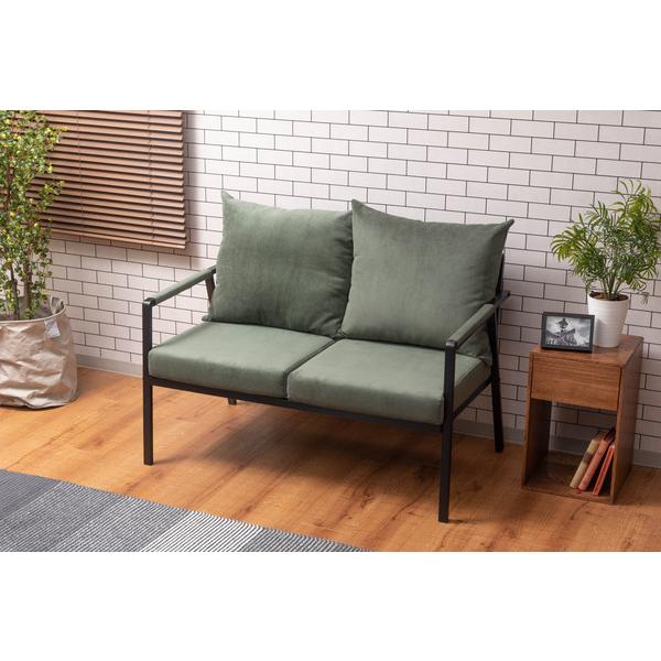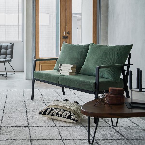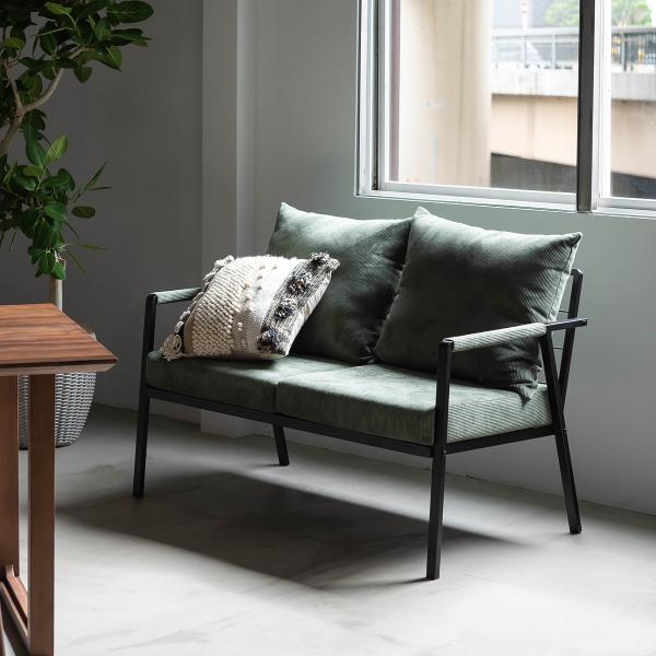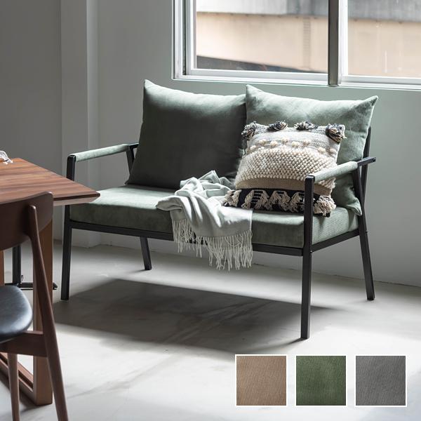 2人掛けソファ ソファー おしゃれ スチール 黒 ブラック コーデュロイ 肘掛けあり アーム付き インダストリアル モダン シンプル グリーン ベージュ グレー