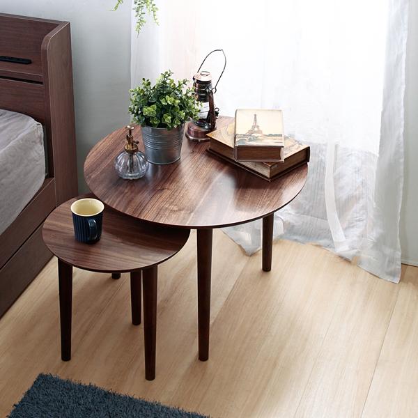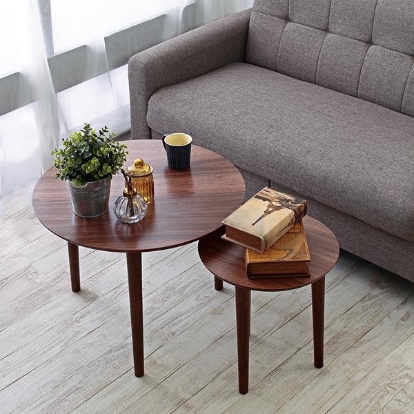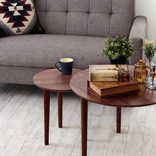 ネストテーブル ラウンドテーブル 円形テーブル 円型テーブル 木製 ウッドテーブル 北欧 サイドテーブル カフェテーブル 【納期A】【azm-tac-224wal】
