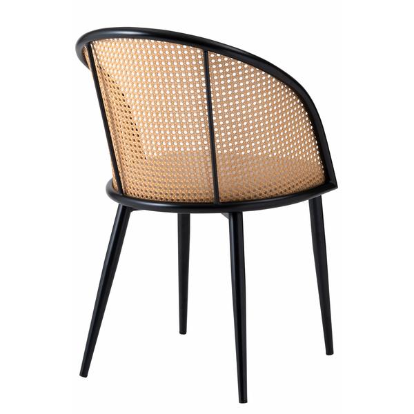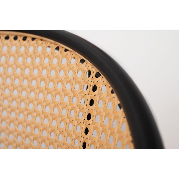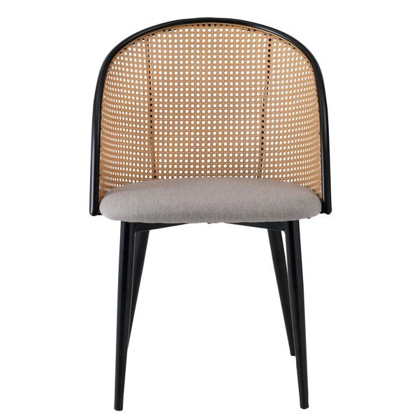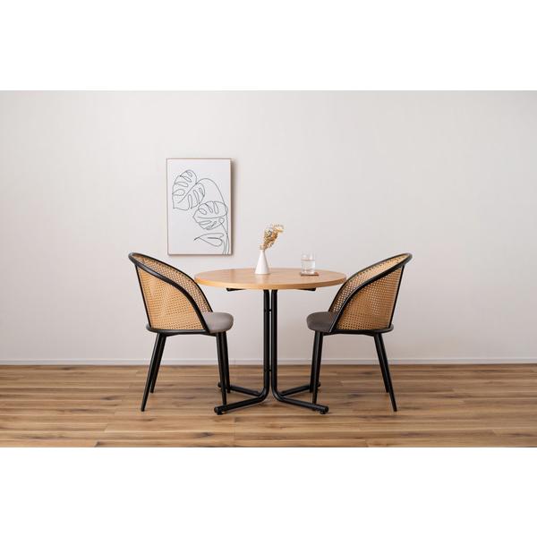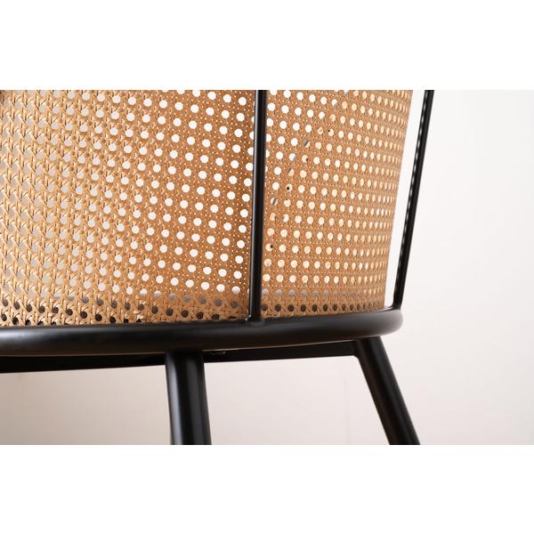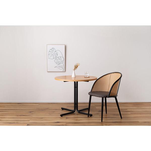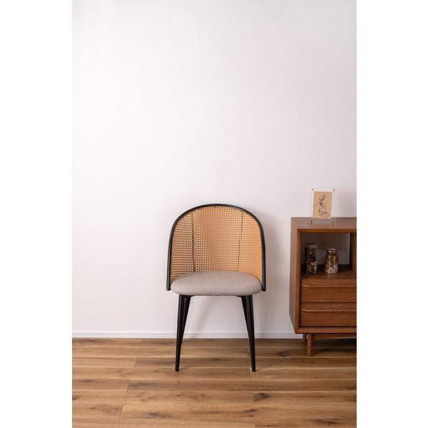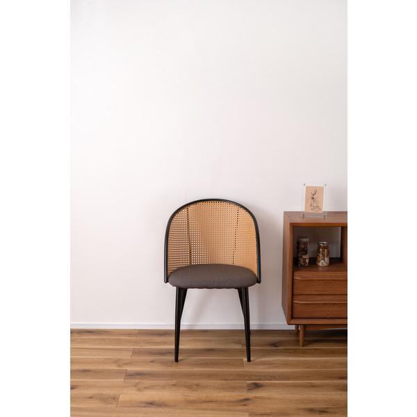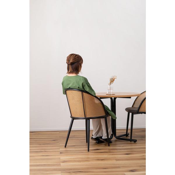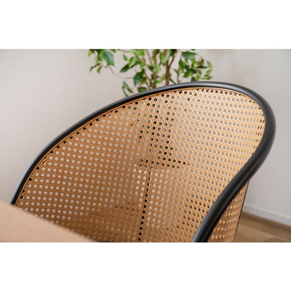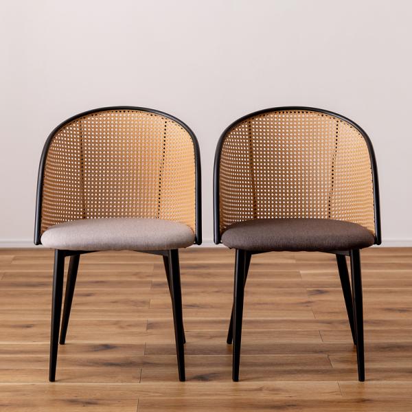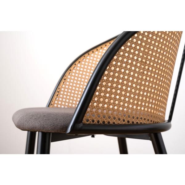 ・ポリエチレン素材のラタン調デザインを施した背面と、ファブリック素材の座面の組み合わせが新鮮なチェア。