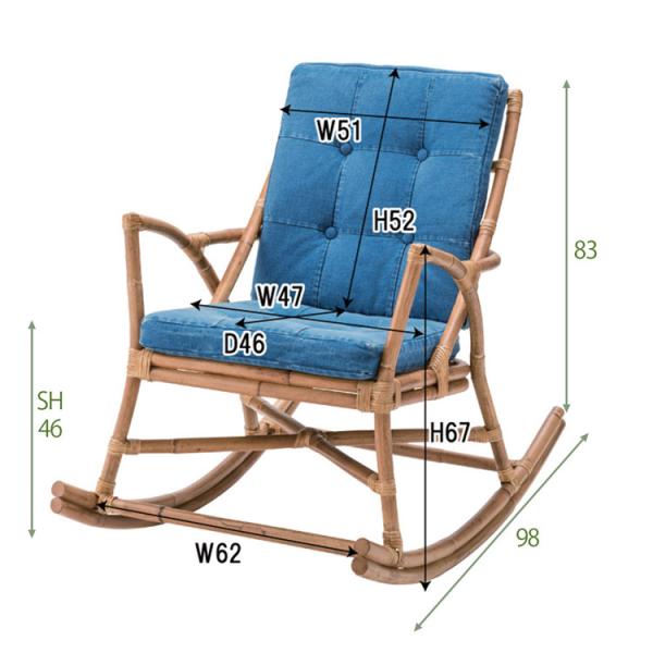 軽くて丈夫なラタンの特徴を生かしたロッキングチェアです。