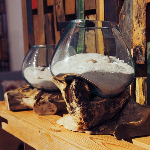 1つ1つ天然の流木に合わせて手作りで作られており、ガラスの形状に同じ物はありません。