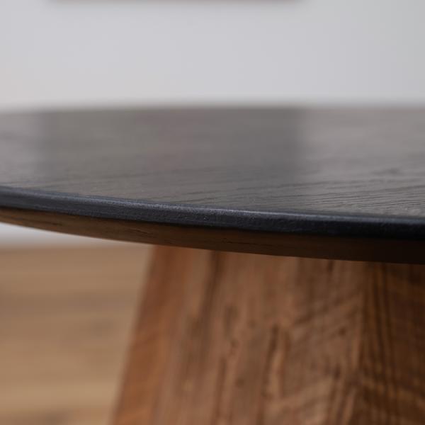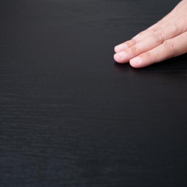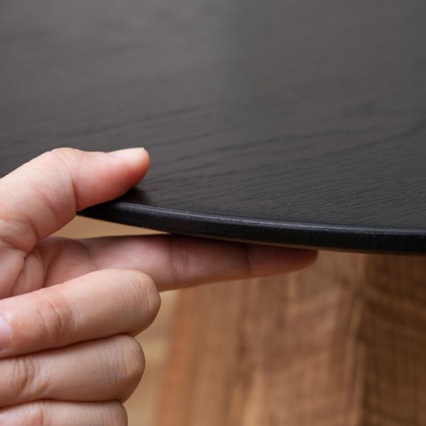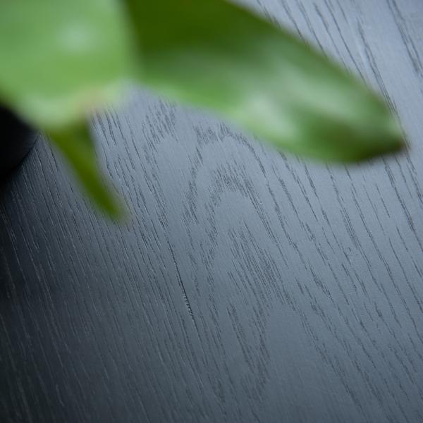 オークの美しい木目を残して塗装された黒い天板とひとつひとつ表情の違うパイン古材の脚が上品さを出しつつ、ぬくもりを感じさせるデザインのテーブル。