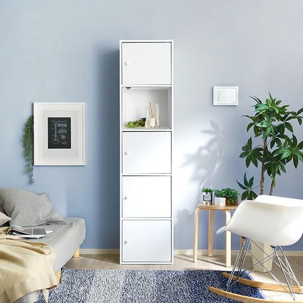 収納棚 扉つき スリム ラック 本棚 A4 収納可能 取っ手 おしゃれ 北欧 キッチン 5段 縦置き 横置き キューブボックス カラーボックス 木目 ホワイト シンプル