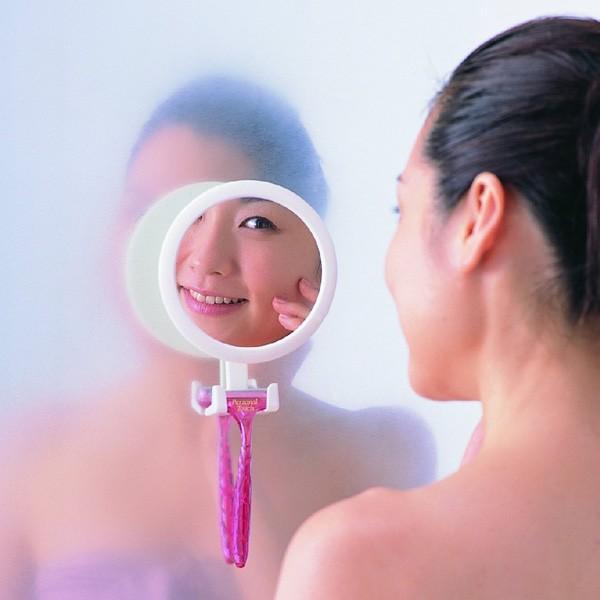 鏡 浴室 お風呂場 曇らない くもらない 角度調整 調節 円形 丸型 ミラー 吸盤 取り付け シェーバーフック付き かみそり 剃刀 バスルーム