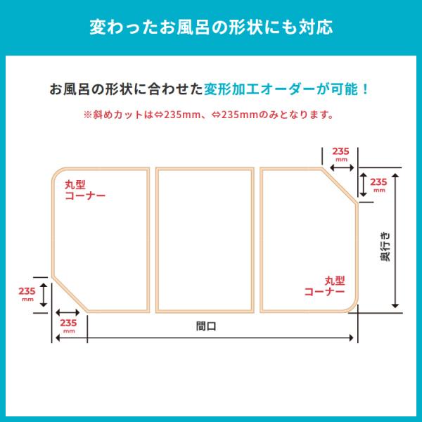 風呂ふた オーダー サイズ 間口121-130cm 奥行55-70cm 変形 加工 冷めにくい フロフタ お風呂の蓋 浴槽の蓋 抗菌 防カビ 日本製 国産 軽い スリム 保温 3枚割 【納期E】【fmk-order5-066】