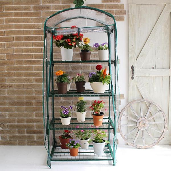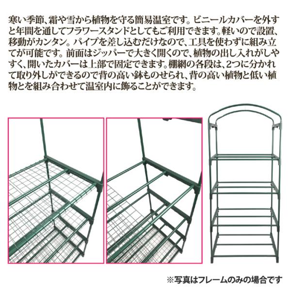 温室 ビニールハウス 家庭用 園芸 植物 栽培 ガーデニング 小型 小さめ 4段 ビニールカバー フラワースタンド フラワーラック 棚 ジッパー 前開け 軽い 軽量 グリーンキーパー 四段 観葉植物 家庭菜園 ハウス用ビニール 屋外