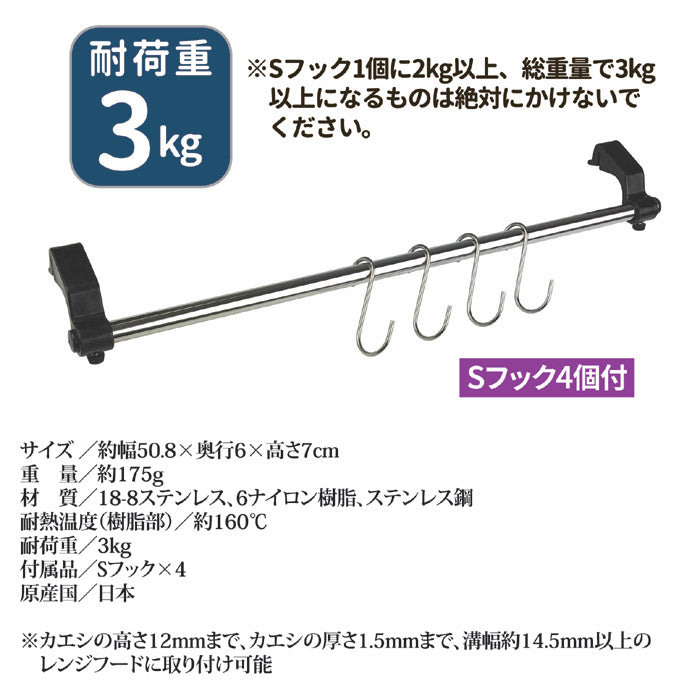 レンジフードハンガー キッチン収納 フック 省スペース ハンガー デッドスペース 利用 効率アップ 台所 収納 引っ掛ける 空間活用 キッチンスペース