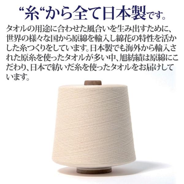 糸のプロである泉州地区の紡績会社がプロデュースしたタオルで、糸を紡ぐことから全て日本の泉州で作られてます。