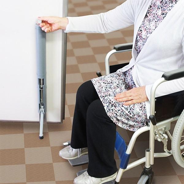 腰を曲げることなくストッパーをおろせるドアストッパーです。