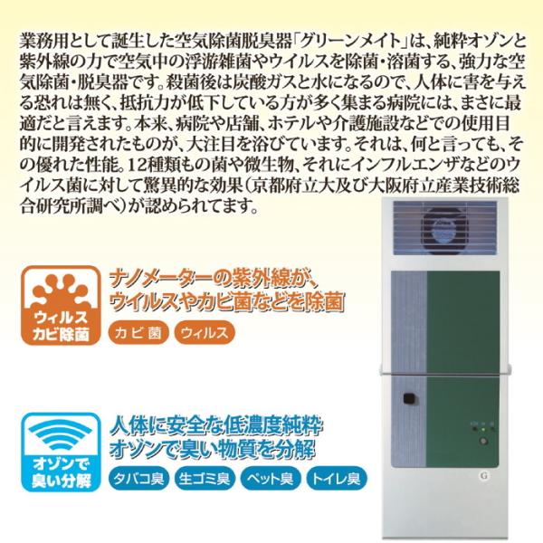 新型インフルエンザはもちろん、他のウイルスやカビも除菌する強力な脱臭器です。