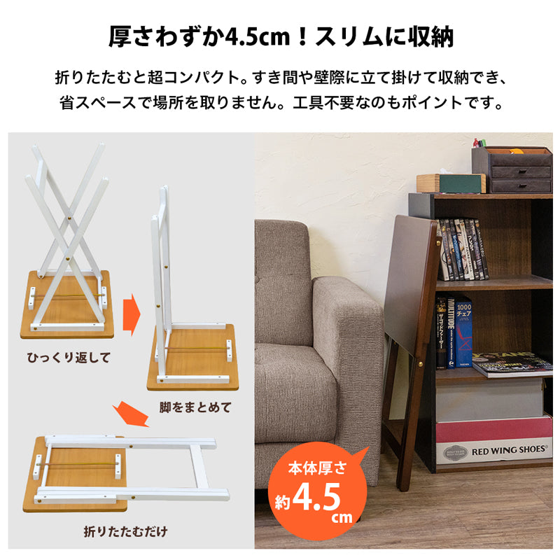 折りたたむと4.5cmと収納に便利なフォールディングテーブルです。